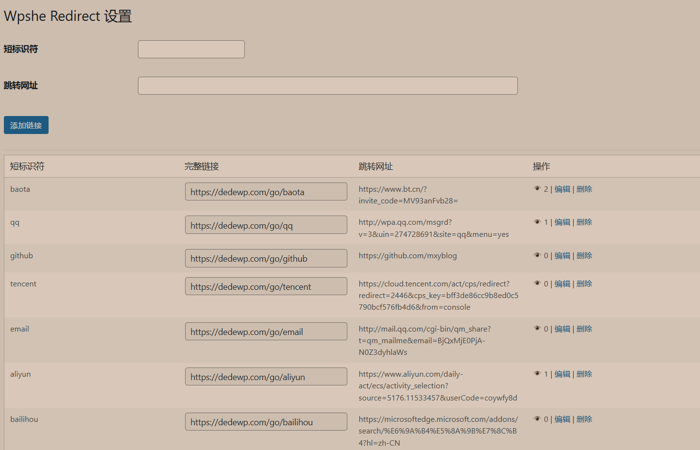 一个简单高效的WordPress短链接管理插件,支持全面的访问统计功能。