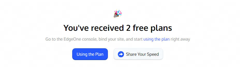 腾讯云 edgeone 免费领,不管之前有没有使用兑换码,在这个页面测速后,直接点击分享到x和 facelbook,不需要发送成功,跳转后就可以领取两个免费版套餐